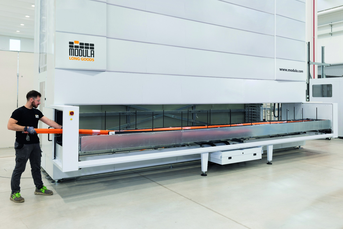 Basierend auf der bewährten Zuverlässigkeit des Modula Lifts vereint Modula Long Goods das „Ware-zum-Mann“-Prinzip mit modularer Architektur sowie höchsten Sicherheits- und Effizienzstandards.